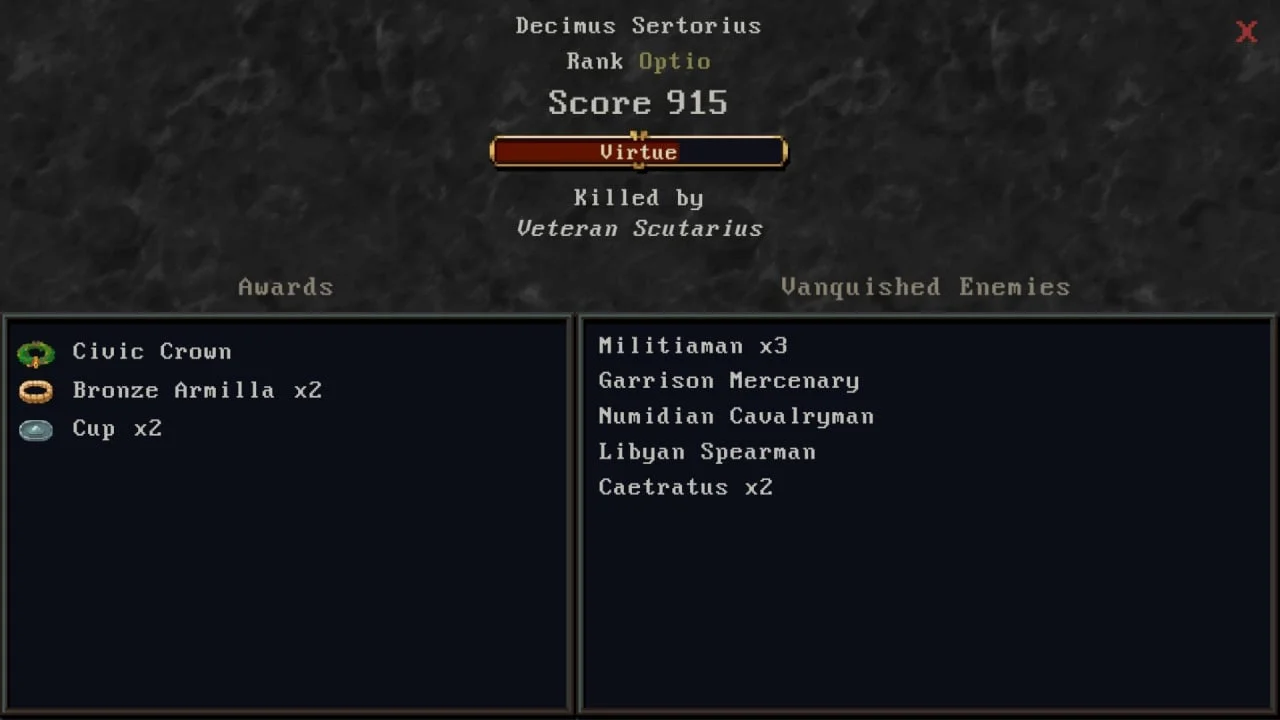 A Legionary’s Life — это текстовая ролевая игра, в которой игрок берет на себя роль римского легионера и проходит путь от простого рекрута до опытного ветерана. Игра уделяет особое внимание реалистичному изображению жизни солдата древнего Рима: ежедневные тренировки, участие в походах, сражениях и принятие решений, влияющих на судьбу героя. Игровой процесс построен на пошаговых действиях и выборе вариантов, где каждое решение может повлиять на здоровье, мораль, репутацию и продвижение по службе. Система характеристик детализирована — важно следить за выносливостью, лояльностью, дисциплиной и отношениями с командирами. Бои происходят в формате тактических текстовых сражений, где успех зависит от стратегии, подготовки и случайности. В игре нет привычной графики, все внимание сосредоточено на повествовании и глубокой симуляции военной жизни. Атмосфера сурова, реалистична и требует вдумчивого подхода, ведь один неверный шаг может стоить жизни или карьеры.